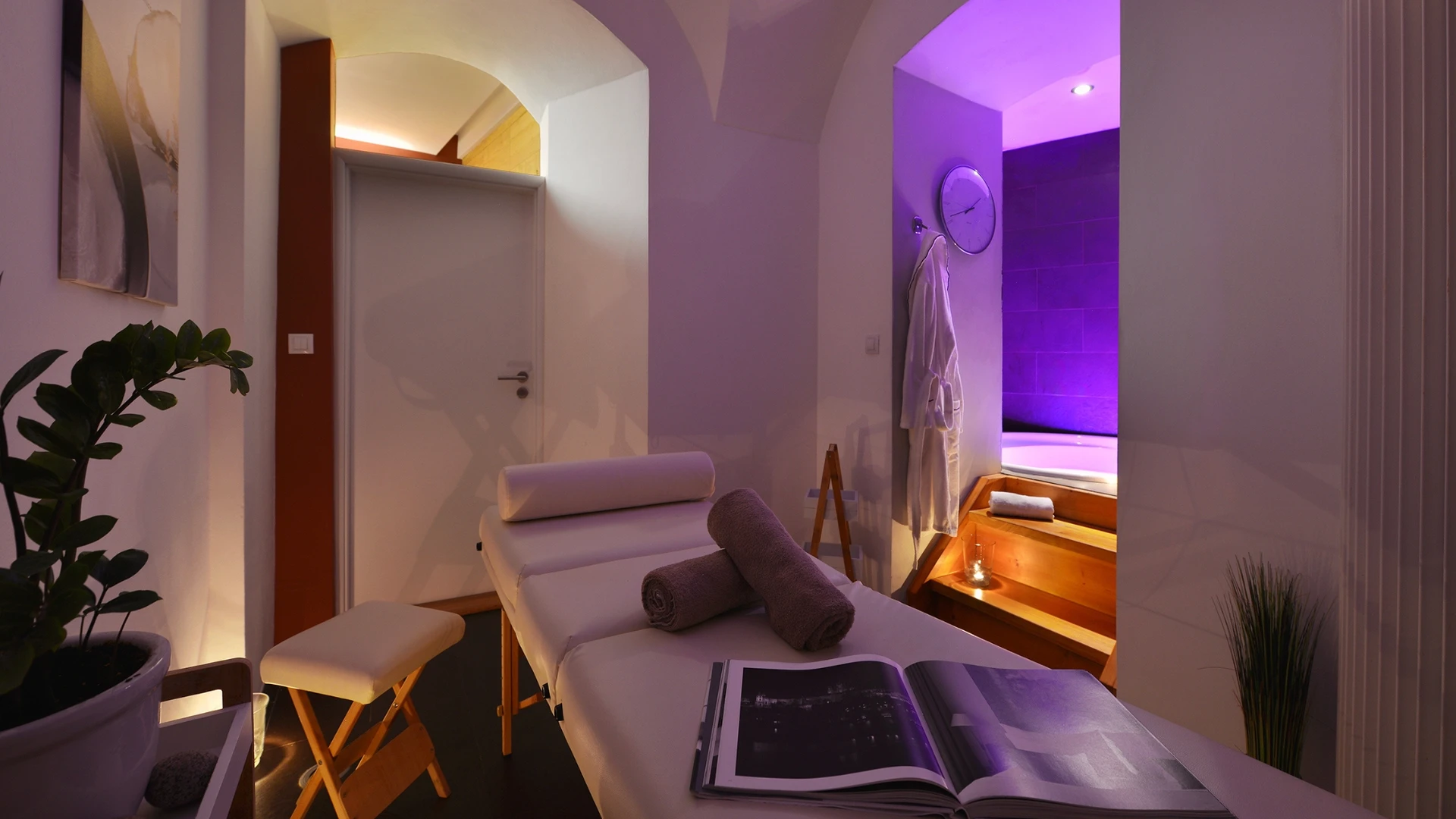30 Minuten entspannende Massage pro Person, Sauna und Aroma-Whirlpool in privater Atmosphäre.