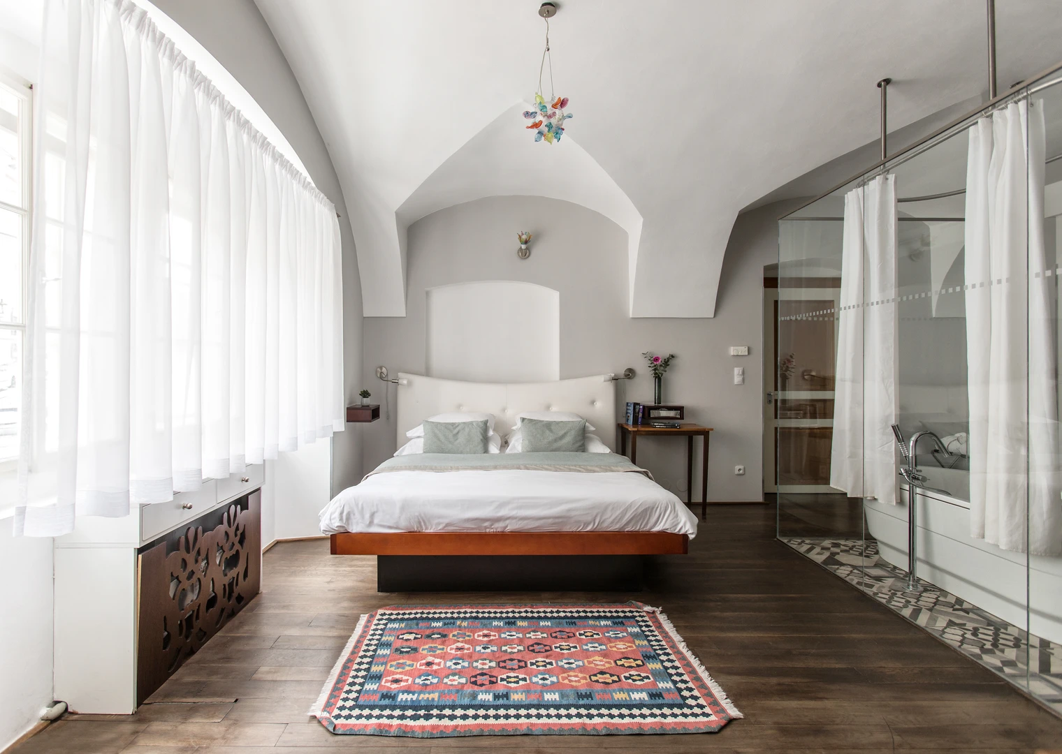 Spacious air-conditioned rooms designed by Borek Sipek offer a peaceful and romantic retreat.